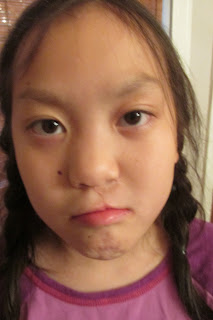 She is crossing her eyes in the first because she did not want me to take her picture. Her sister told her to do it so I would leave her alone. I love big sister's. We got a reverse band yesterday and he said it will address the under bite. His goal for this set of braces is to eliminate the gap on top and fix the under bite as much as possible. I am not sure what the next set will do, but we are so happy we are one-third done with this set. Flo is hoping to get them off before we go to China. I don't think that is going to happen, but she is still hopeful. Thank you for following us on this journey. I may show some real change next month when the under bite has really moved.